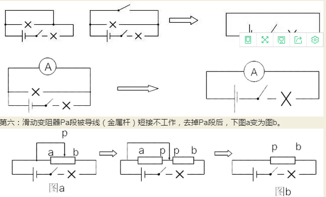 第六:滑動(dòng)變阻器Pa段被導(dǎo)線(金屬桿)短接不工作,去掉Pa段后,下圖a變?yōu)閳Db。